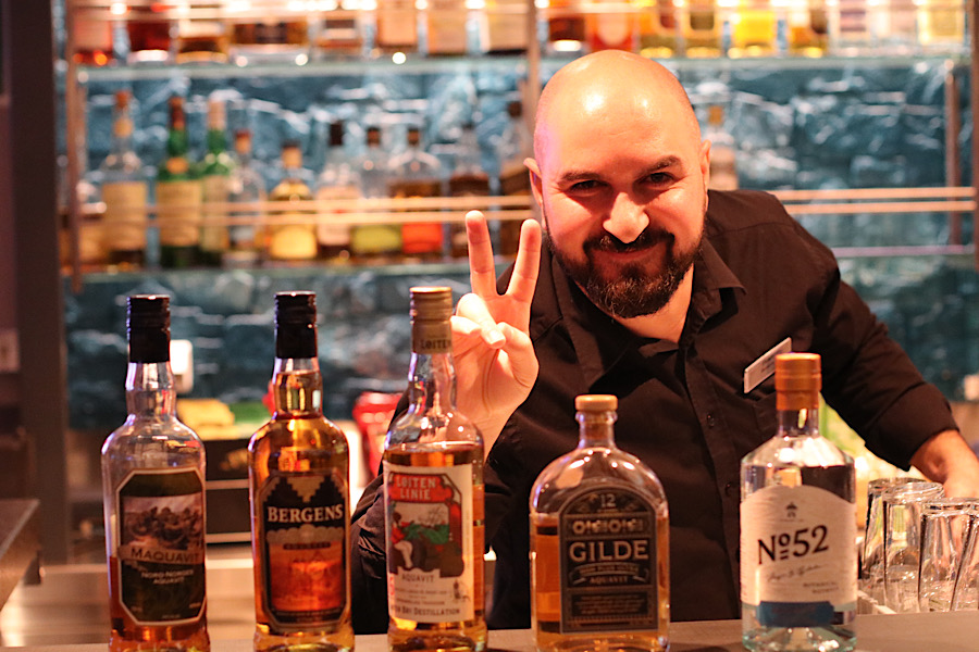 Heute wurde sogar die Überfahrt auf die Lofoten gecancellt. In Bodö mussten wir 3 Stunden warten, bis der Sturm etwas abflaute und das Schiff in den Hafen konnte. Aber alles nicht so schlimm mit Gintonic und einem Gläschen Whisky.