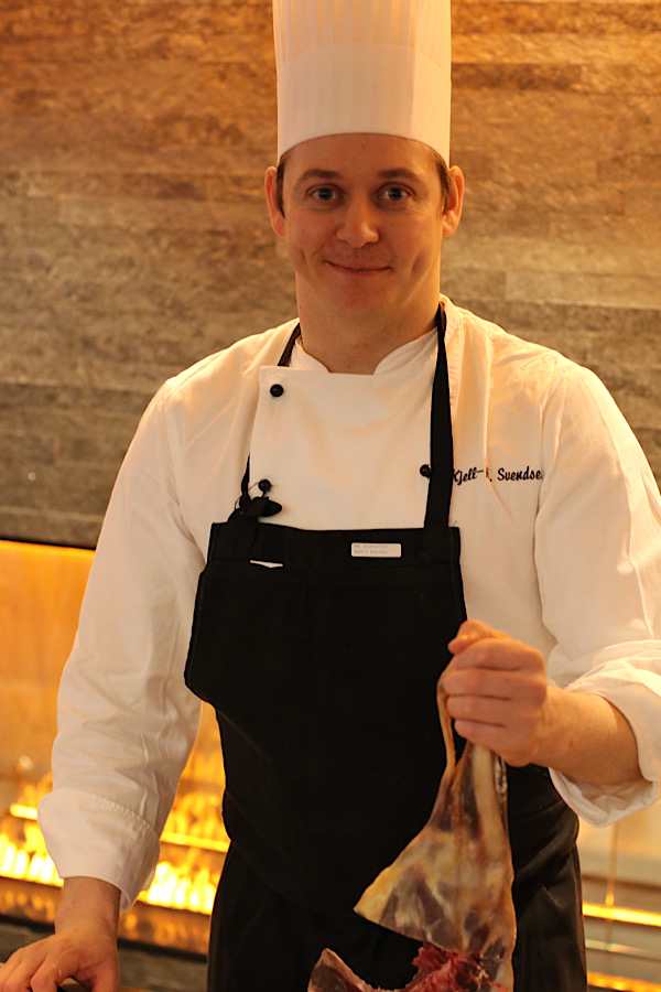 Am Nachmittag wurden uns eine traditionelle norwegische Spezialität präsentiert. Ein Lammschlögel speziell in Salzlake eingelegt und luftgetrocknet. Der nette Koch säbelte mit dem Messer Kostproben für uns zurecht und auf Flatbrød und einem Tupfen Sauerrahm konnten wir das zarte Fleisch kosten.