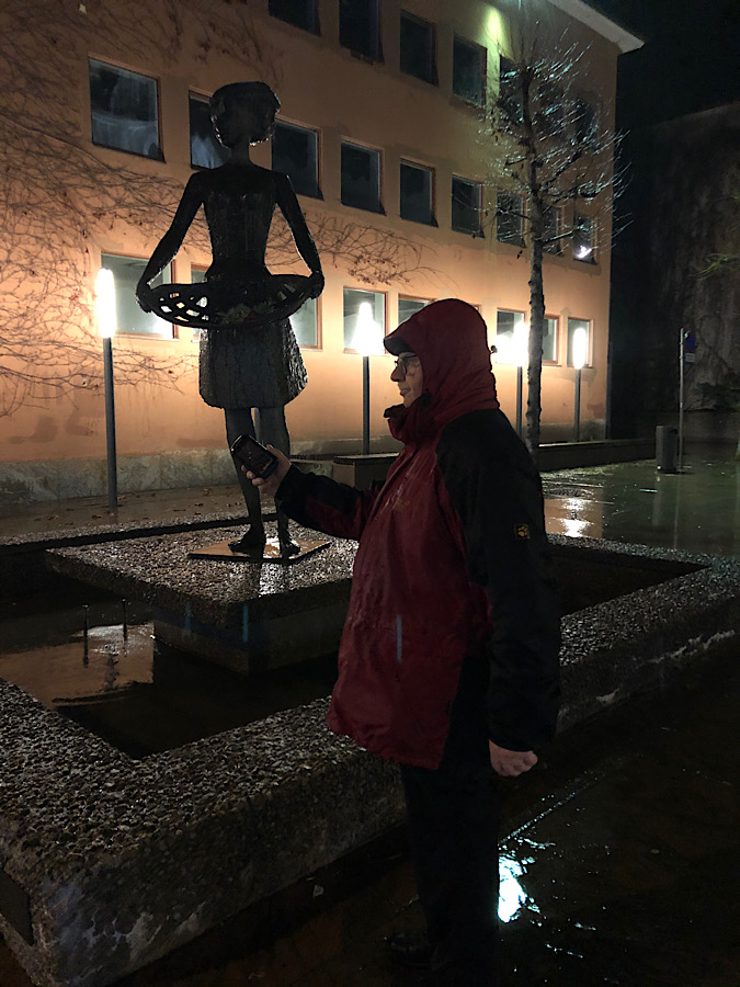 Zum Abschluss der Geocachingrunde machten wir noch Fotos von uns beim virtuellen Cache „The Rose Maiden Molde“ – GC88Z3E von Smedstu. Molde ist bekannt als Stadt der Rosen und für sein Jazzfestival.