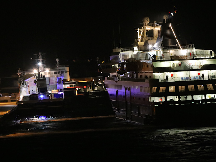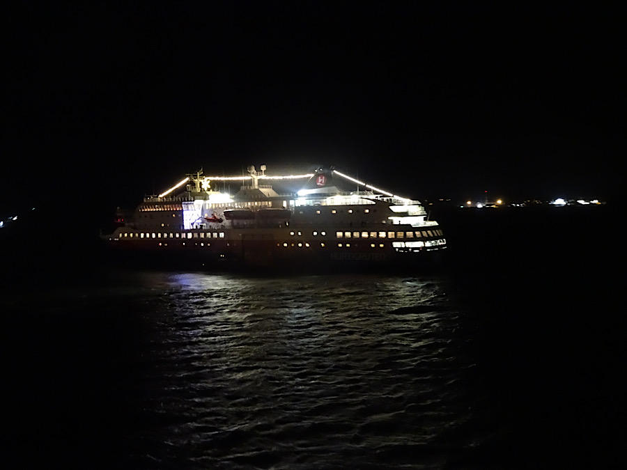 Nach einer Fahrt mit Windstärke 8, allerdings dank der Navigierungskünste der Besatzung und des Kapitäns meist von hinten, um damit die Schaukelbewegungen zu minimieren, erreichen wir Rørvik.