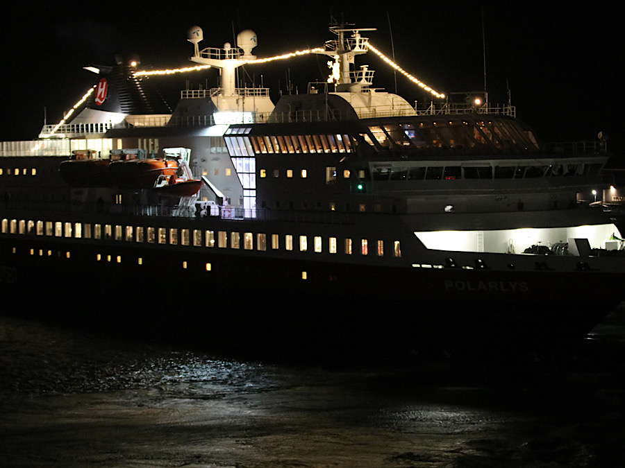 Am Nachmittag wurde die Beschreibung von Hans Egede von 1729 in „Det gamle Grønlands nye Perlustration“ teilweise war. Zwar sahen wir keine riesige wasserspeiende Wasserschlange, aber das Meer brodelte auch ziemlich neben uns . Rørvik erreichten wir bereits bei Dunkelheit, die uns je weiter im Norden immer mehr im Griff hat.