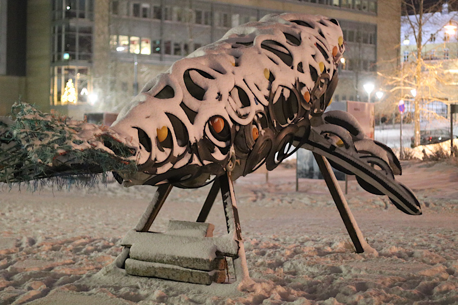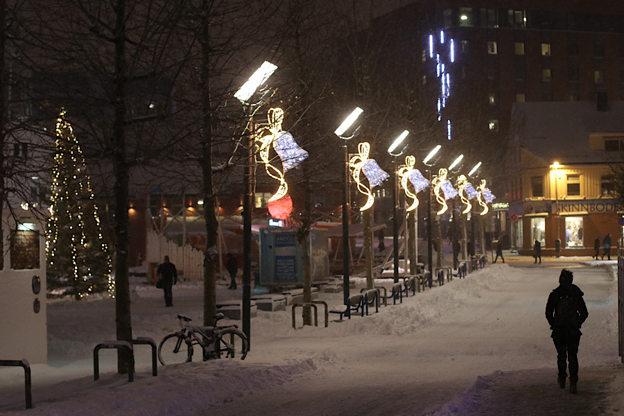 Auf unserer Geocachingtour mussten vor allem zum Schluss einige kleinere Umwege in Kauf nehmen. In Tromsø war gerade eine Laufveranstaltung und eine Hauptstrassen war abgesperrt. Die Seitengassen waren durch den gefroren Schnee teilweise sehr glatt, was auch zu einer Landung auf dem Allerwertesten führte. Der Cache Tromsø Brass 25 års jubileumscache – GC3RQVB von sveina erinnert an die Blechmusiktradition, die ihre Wurzel hier in Norwegen aus England hat.