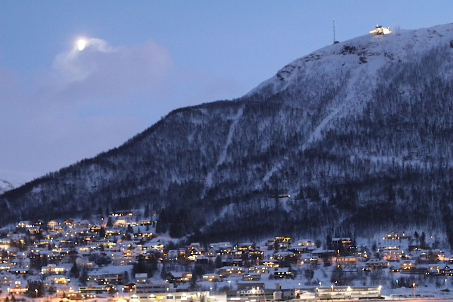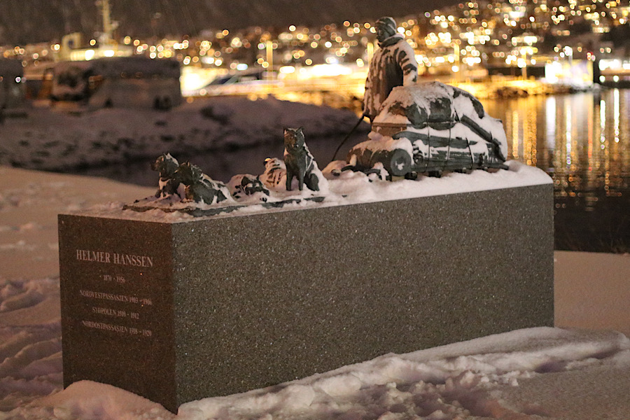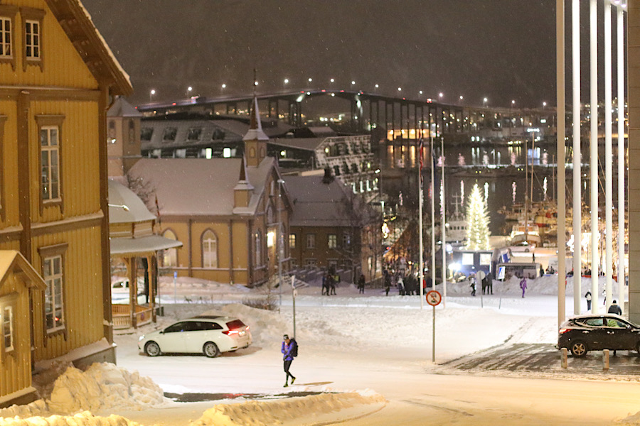 Heute konnten wir die Polarkreistaufe nachholen, die bisher der Sturm verhindert hat. In Finnsnes zeigte der Winter wieder seine Kraft. wie überhaupt der gesamte Tag von Schneestürmen, die max. 30 Minuten dauern, geprägt war. Höhepunkt des Tages war unser Besuch in Tromsö, wo wir mitten in eine Laufveranstaltung kamen.