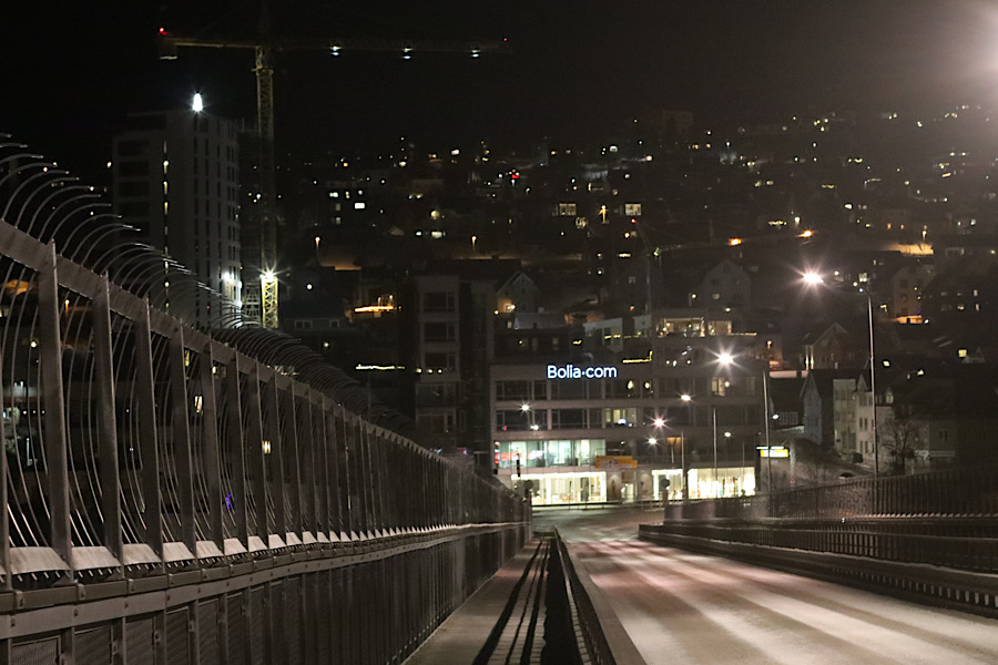 Dann wollten wir noch ein Doserl auf der Brücke suchen. Dort herrschten allerdings Windbedingungen, dass nicht so einfach frei stehen konnte. Jetzt waren uns auch die hohen Gitter klar, die rechts und links zum Schutz der Fußgänger und Radfahrer montiert waren. Hier hatten wir einen sogenannten „DNF“ und wie zwei Trolle trollten wir uns zur MS Spitsbergen zurück.
