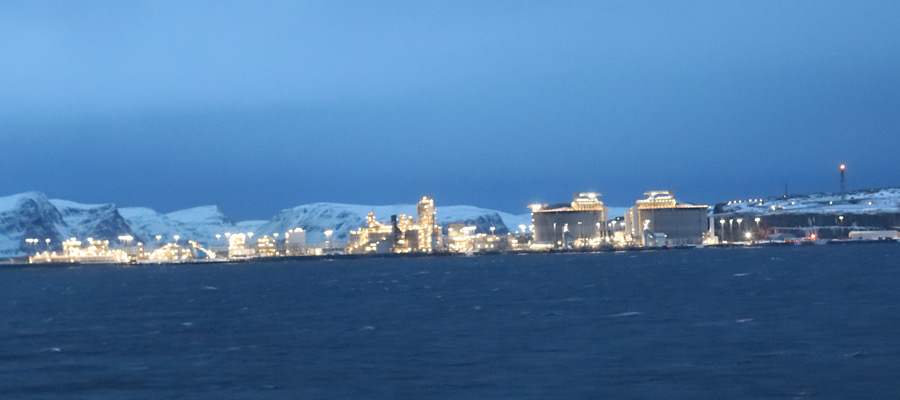 Das CO2 wird per Pipeline zurück zum Gasfeld geführt und in einer Tiefe von 2,6 Kilometer unter dem Meeresboden sicher gelagert, anstatt es einfach in die Atmosphäre entweichen zu lassen. Dieses vorbildliche Verfahren (Fachbegriff: Carbon Dioxide Capture and Storage Facility) dient für künftige Erdgasverflüssigungs-Anlagen als Referenz. Inwieweit die Datenstimmen und ob das klimapolitisch sinnvoll kann ich nicht einschätzen. Auf jeden Fall musste wegen der Anlage die Schifffahrtroute der Hurtigruten verändert werden und eine Flugverbotszone über der Anlage wurde ebenfalls verhängt.