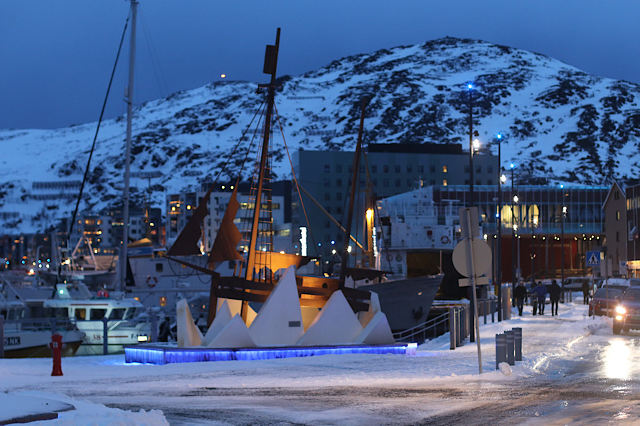 Unsere Geocachingtour in Hammerfest war nur mit Schuhspikes möglich so eisig war es hier. Bei GC7J6WG – Mollafjæra von Artic team mussten wir zwar einige Muggels abwarten und der weiße Delphin, der hier manchmal zu sehen ist, machte auch Winterpause.