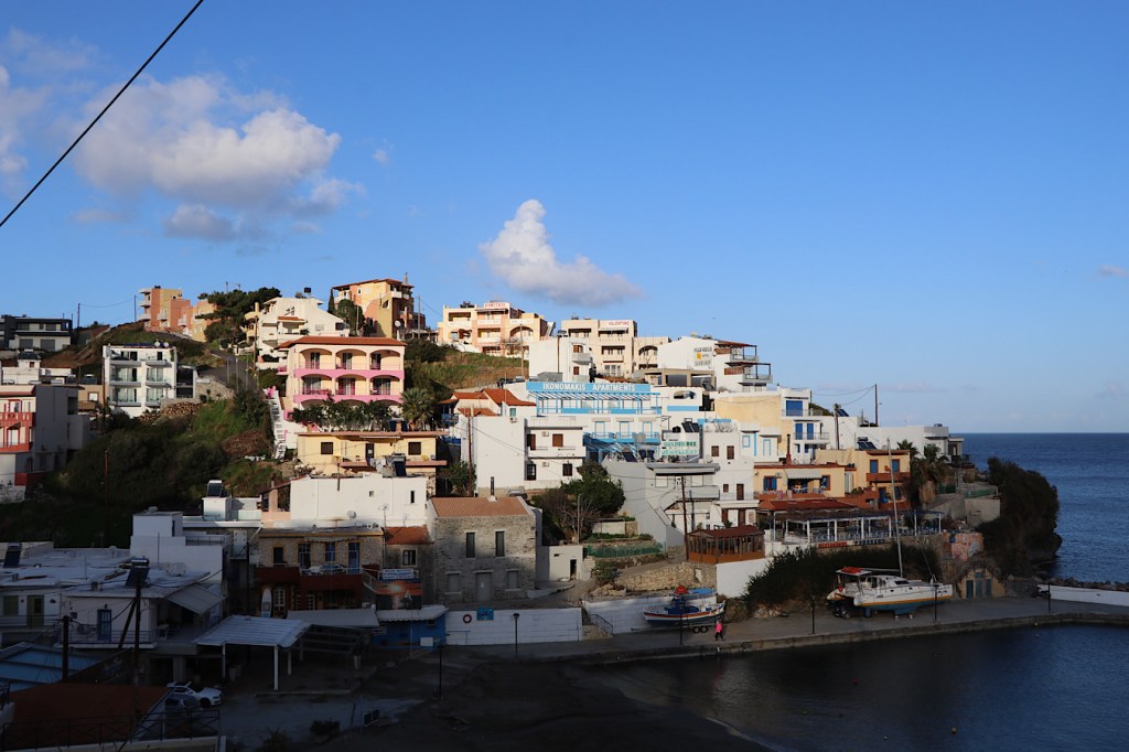 Beim Landeanflug blauer Himmel, blaues Meer und dann taucht eine braune Wand am Horizont auf. Es gibt immer noch ein paar die Klatschen nach der Landung – seltsam machen sie das auch, wenn der Lokführer den Railjet richtig im Bahnhof zum Stehen bringt. Die schneebedeckten Berge von Kreta begrüßen uns nach der Landung mit 16°C Lufttemperatur. Dann spukt der Flughafenuntergrund unsere Koffer aus. Dicht gedrängt steht die ältere Schwarmintellegenz am Bagagge claim, um ja nicht den eigenen Koffer zu übersehen.