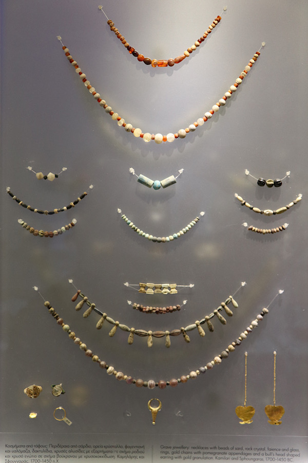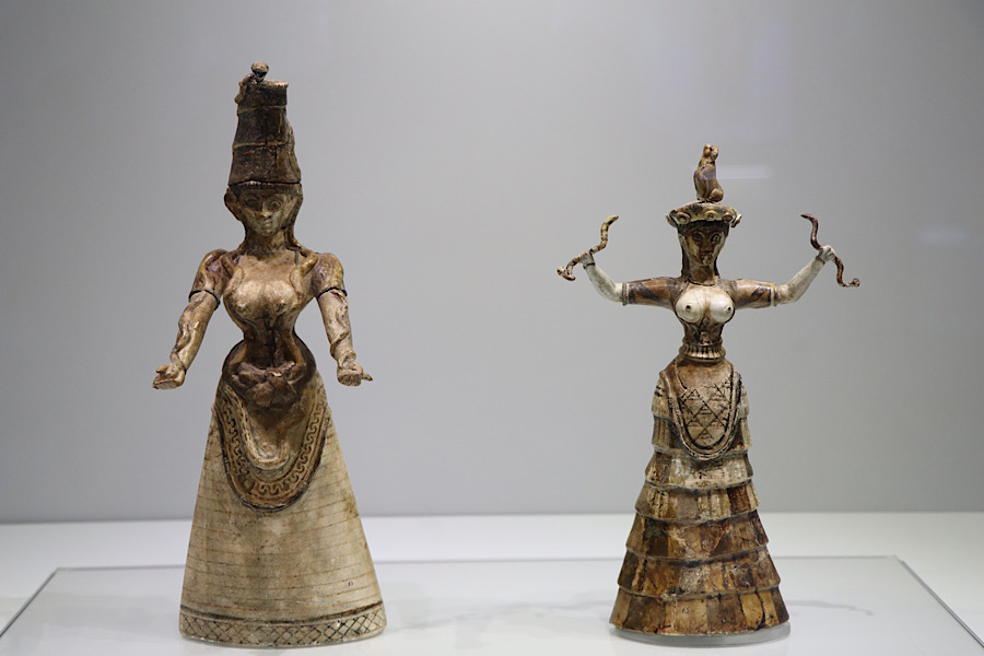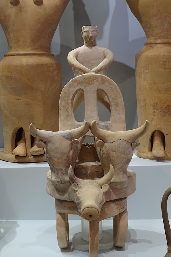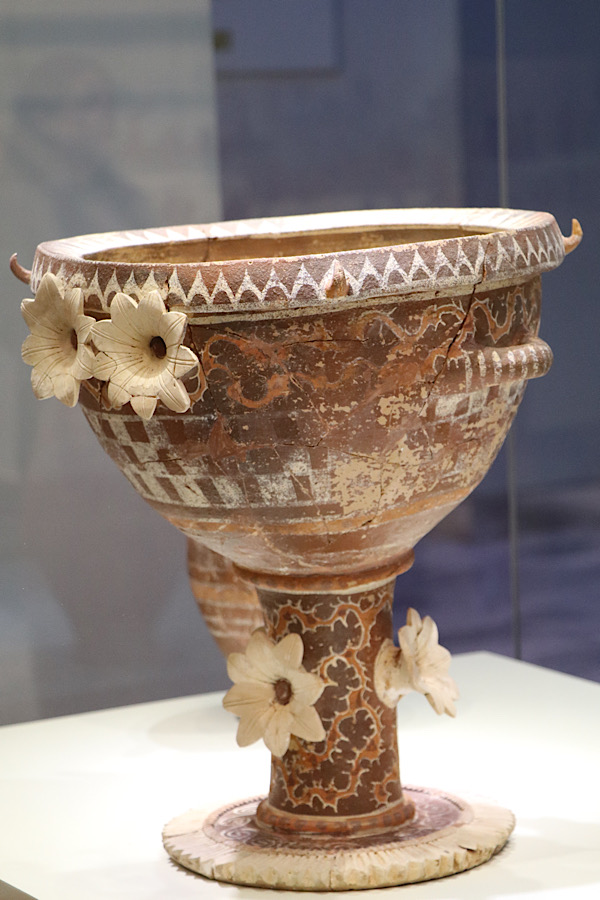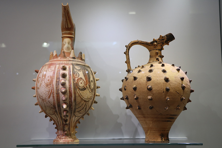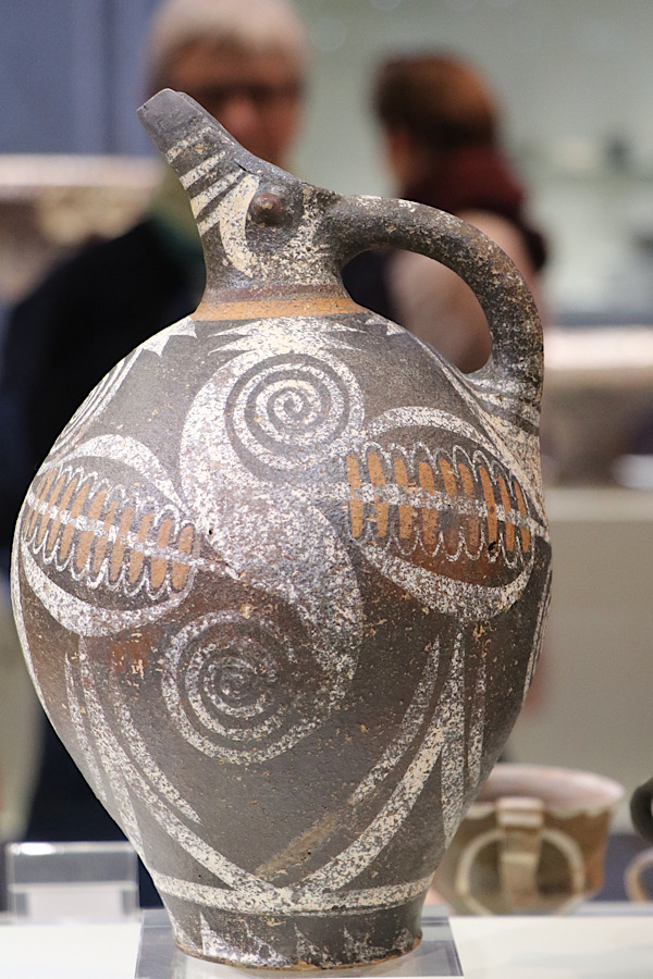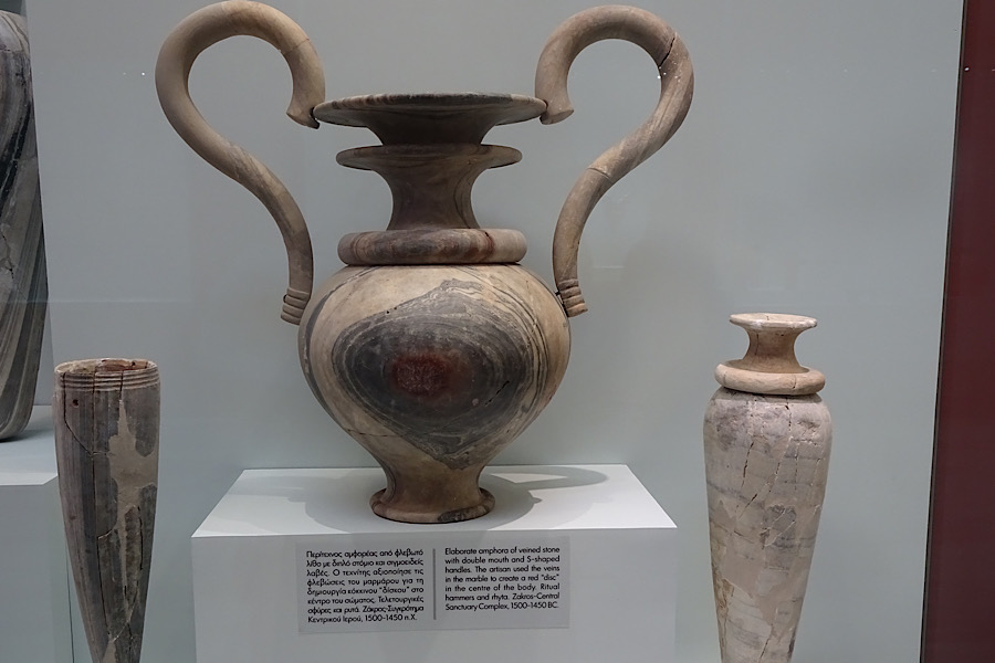Da gibt es Gefäße mit Tier- und Pflanzenmuster. Bei manchen Amphoren und deren Verwendungszweck kann man auf die Stellung des/der ehemaligen BesitzerIn schließen. Da gibt es klassische Vorratskrüge und Gefäße mit der Doppelaxt, dem Machtsymbol der minoischen HerrsccherInnen.