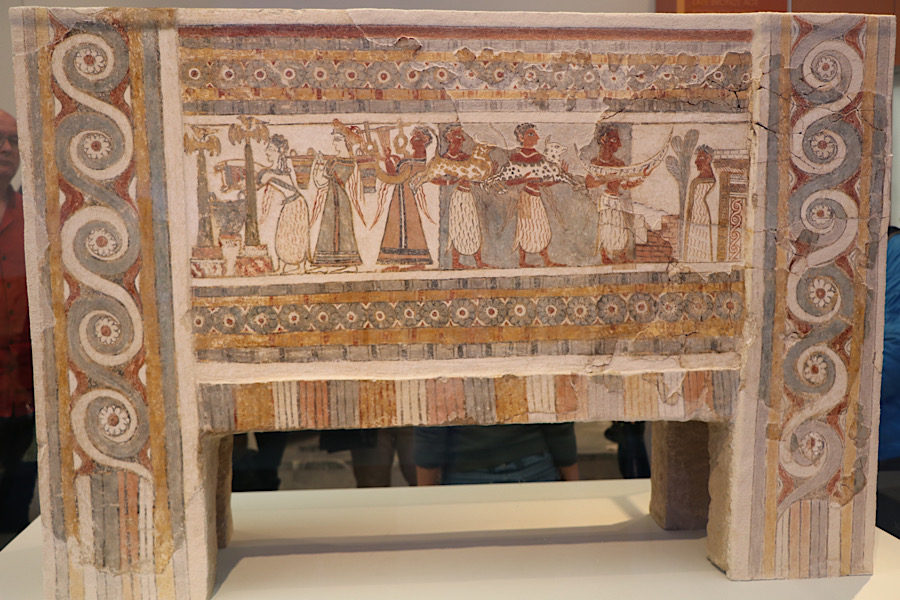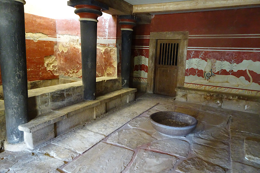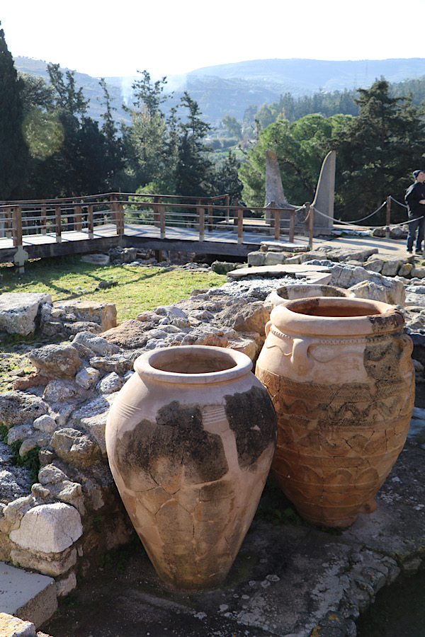 Wenn du zusammen gekauert in einem riesigen Tonkrug sitzt, und es ist dunkel, dann hat man dich wahrscheinlich in der minoischen Zeit auf Kreta beerdigt. Heute konnte wir Amphoren und Krüge bei der archäologischen Ausgrabung in Knosses und im archäologischen Museum in Heraklion bestaunen und besichtigen. Ich will mir gar nicht vorstellen wie KönigInnen und OberpriesterInnen in Olivenöl eingelegt mit Kräutern gewürzt … In jedem Fall seht interessant war die Einführung in die erste Europäische Hochkultur, die uns Christina gab. Edelsteine, Früchte, Wein, Olivenöl fast alles wurde in speziellen Kühlräumen in Krügen aufbewahrt.