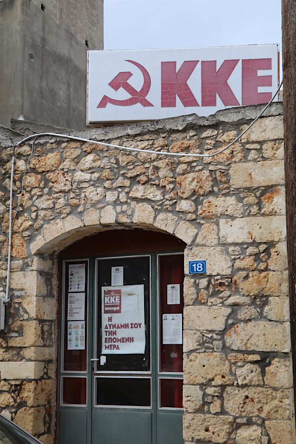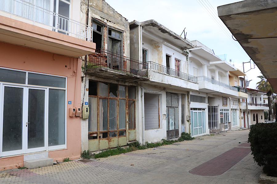 Beim Rundgang in Arkalochori abseits der Hauptstrasse merkten wir, wie sehr Griechenland unter den restriktiven Sparvorgaben der EU leidet. Kein Geld für Investitionen ob privat oder im öffentlichen Sektor. Das befristete Arbeitslosengeld beträgt €350.-