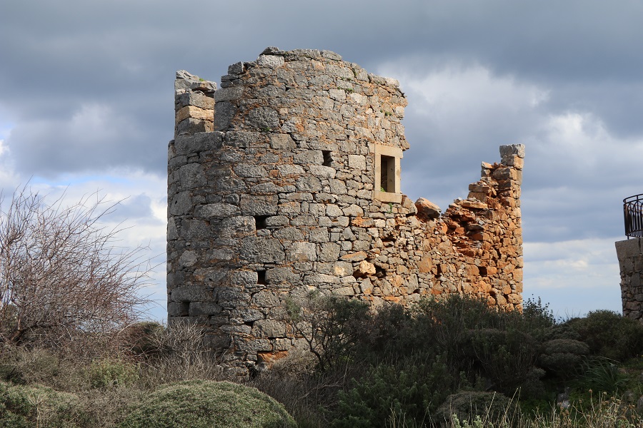 Nach dem Cache #3 gehen wir zur Strasse runter bergauf zu den 6 Mühlen. Am Weg vom Parkplatz findet man viele Gewürzsträucher, wie z.B. Salbei, Thymian und Oregano. Je nach Jahreszeit, wird man von diesen herrlichen Düften begleitet. Von GC7020X – 6 Mühlen über Elounda von Rudakis haben wir tollen Ausblick in die Mirabellobucht. Beim Suchen haben wir uns von den Koordinaten etwas in die Irre führen lassen. Hier gibt es auch genügend Mauern, wo man Suchen kann. Aber manchmal ist zurück zum Anfang – wie ist man hingekommen, hilfreich.
