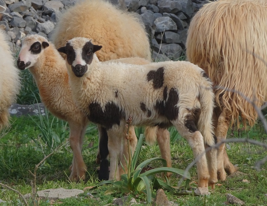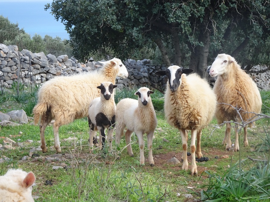 Wir wandern zwischen Steinmauern und Olivenbäumen und achten auf die größeren „Haufen“, die die Schafe hier hinterlassen haben. In der Luft hängt ein ganz eigener Duft – manchmal Salbei. Jetzt kommt die Sonne immer öfters durch und die rötliche Erde leuchtet sehr kräftig auf den Berghängen. Während der Wanderung treffen wir immer wieder auf pelzige Wesen.