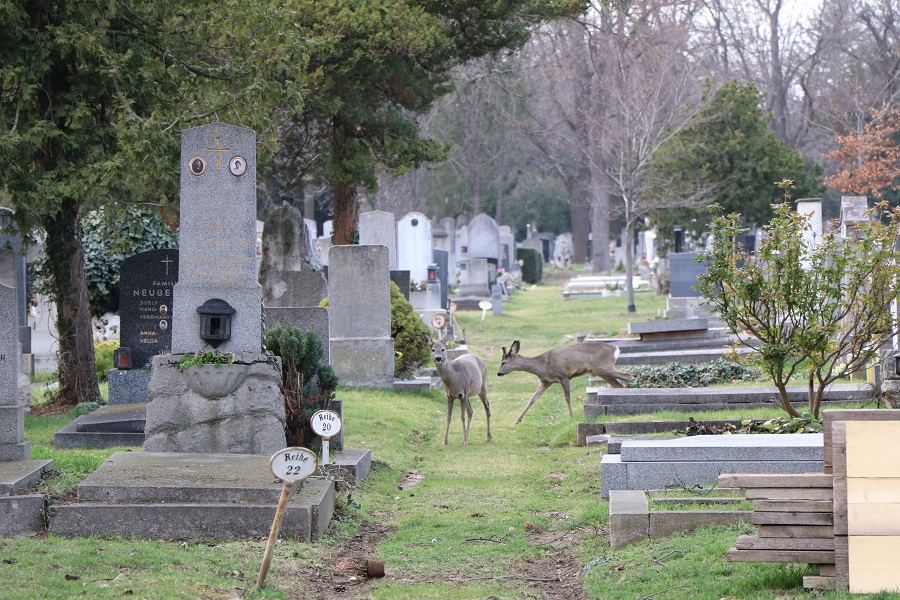 Die weiße Pracht des blühenden Schlehdorns begrüßt uns am Spazierweg am östlichen Ende außerhalb des Zentralfriedhofs. Kräftige Sonnenstrahlen sorgen für eine warme Nachmittagsluft und ließen uns kurz die Misere rund um das Coronavirus vergessen.