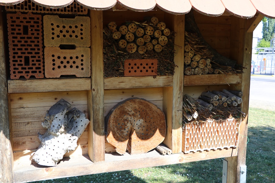 Hier erledigten wir die dritte Aufgabe und fanden ein Wildbienenhotel, das von den Lehrlingen der OMV in Kooperation mit Schülern der Polytechnischen Schule Himberg und den Stadtimkern gebaut wurde.