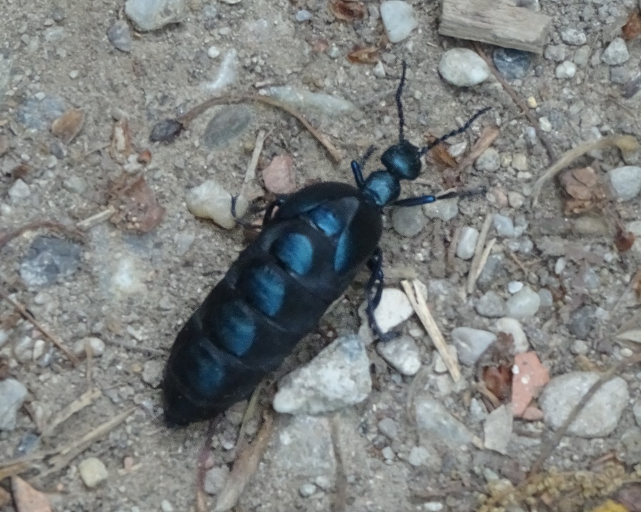 Ein schwarzblauer Ölkäfer (Maiwurm) kreuzt unseren Weg. Er ist das Insekt des Jahres und er gehört zu den giftigsten Insekten in unserem Naturraum. Sein Gift Cantharidin tötet einen Erwachsenen und wurde seit der Antike zu Giftmorde verwendet. Wir heben um 14:12 „Wozu brauch ich eigentlich – GC8649R“ von den bereits angeführten Ownern. Falls hier eine Bonuszahl existiert, waren wir uns beim reduzierten Logbuch nicht sicher.