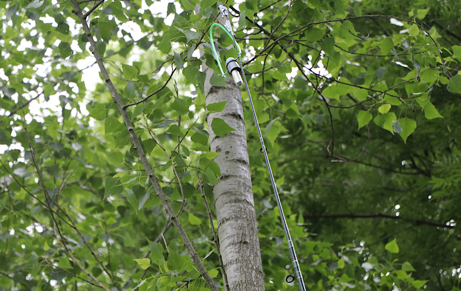 Leider gingen wir am südlichen Ufer des Baches entlang und fanden keine Stelle wo wir sicher übersetzen konnten. So machten wir einen kilometerlangen Umweg. Unser erster Cache war von der Runde war #6 Schwedisches Wäldchen – GC82945 von Woodquarterer. Zum Heben haben wir eine Konstruktion aus einer Angel und diversen Verlängerungen, die uns die Natur zur Verfügung gestellt hat, gebaut.
