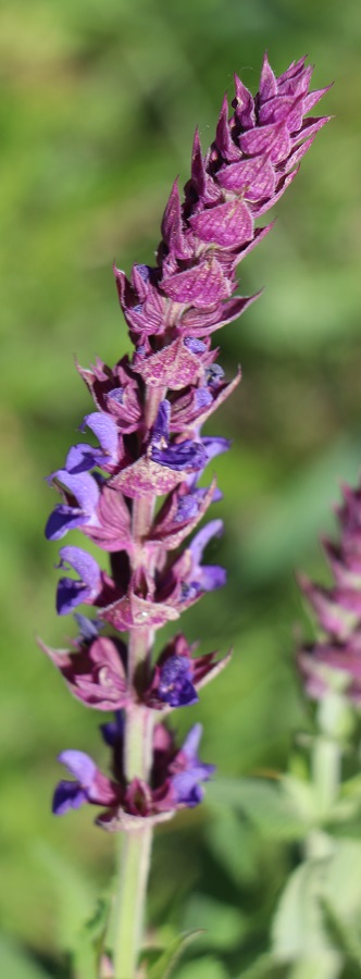 Bei Neuberg 04 – GC8R3KY um 15:30 begrüssten uns diverse wilden Kräuter. Neben der stinkenden Hundskamille diese Salbeiart. In Österreich ist der Hain-Salbei im pannonischen Gebiet (Burgenland, Wien, Niederösterreich) heimisch und kommt hier häufig vor. Aber auch der Steppen-Salbei (lat. Salvia nemorosa) ist durchaus essbar, soll auch eine gewisse Heilkraft besitzen. Allerdings ist die Wirkung je nach Sorte des Steppen-Salbeis sehr unterschiedlich ausgeprägt. Es spricht nichts dagegen, zum Beispiel die Blüten als essbare Deko zu verwenden. Für Heilzwecke sollten Sie jedoch auf das anerkannte Heilkraut Salvia officinalis zurück greifen.