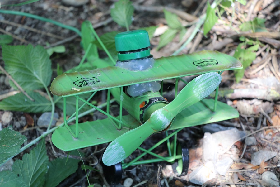 Am Modellflugplatz Orth – GC8MDC8 von Cecedevil treffe ich auf eine tolle Installation für diesen Cache. Diese Arbeit hat sich einen Favoritenpunkt verdient. Donna Makrella würde ihn zum „Rapidflieger“ ernennen.