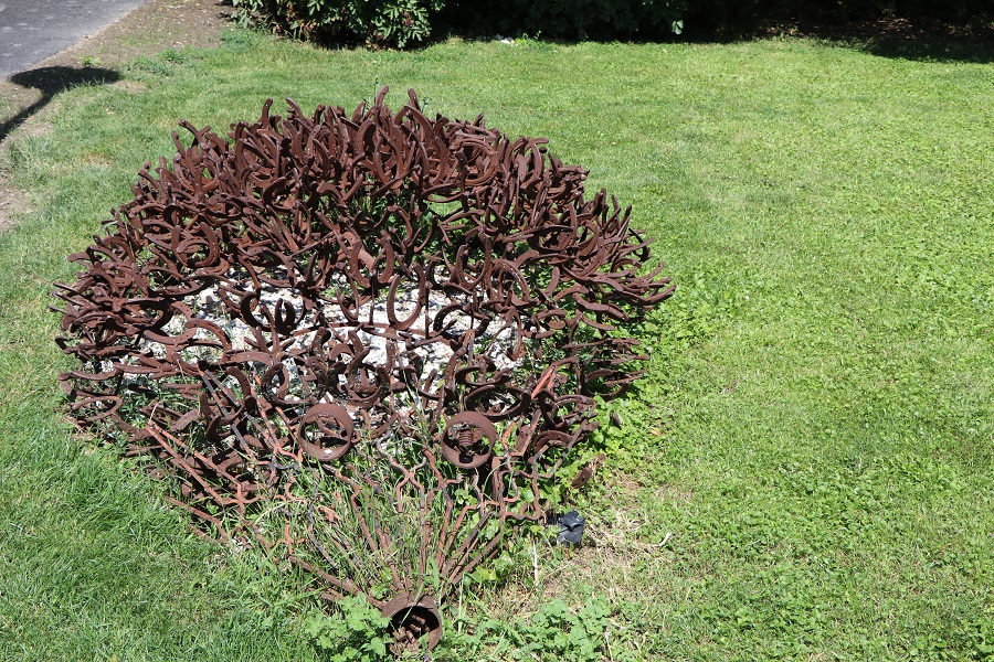 Eine tolle Konstruktion und KünstlerInnenarbeit aus alten Hufeisen. Ich durchquere den Klosterpark in südlicher Richtung und entdecke einen Garten mit vielen Obstbäumen. Hier kämpfe ich mich mit meinem Radlerdress durch eine Brennesselplantage, um Come2gether – Name ist Programm – GC5BFPR zu heben. Vorher habe ich schon die Aktivitäten der MitarbeiterInnen der Lebenshilfe bei ihren Betreuungsarbeiten gesehen. Herzlichen Dank an alle für diese wichtige gesellschaftliche Arbeit, die meines Erachtens auch wesentlicher besser entlohnt werden müsste.