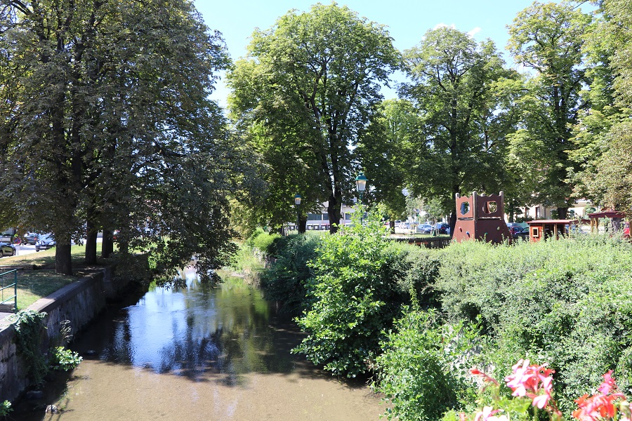 Der dritte Cache – liegt in einer kleinen schattigen Durchfahrt. Bei der heutigen Hitze sehr angenehm. Allerdings braucht Wuff von f.fred – GC87A4E doch einige Überwindung zum Loggen.