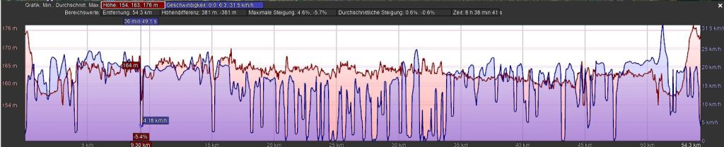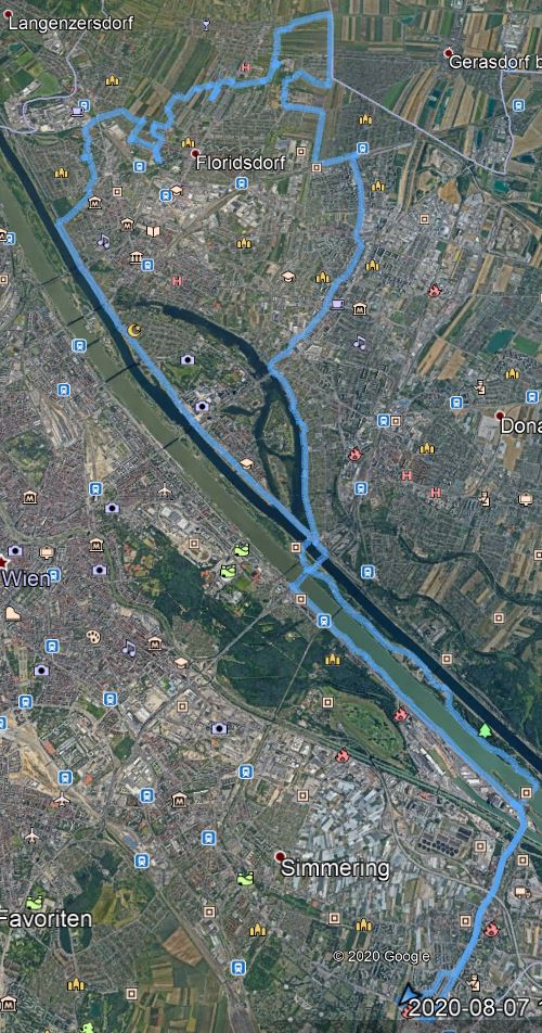 Von Simmering starten wir zum Kraftwerk Freudenau – weiter auf der Donauinsel – Jedlesee – Schwarzlackenau und kommen nach 19 km zum Kanal. Der Marchfeldkanal ist ein künstlich errichtetes und naturnah gestaltetes Gerinne in Niederösterreich und Wien und flutet den Rußbach mit Wasser aus der Donau. Der 18 Kilometer lange Kanal ist unter anderem ein wichtiger Wasserlieferant für die Gemüsebauern des Marchfelds und ein Naherholungsgebiet.