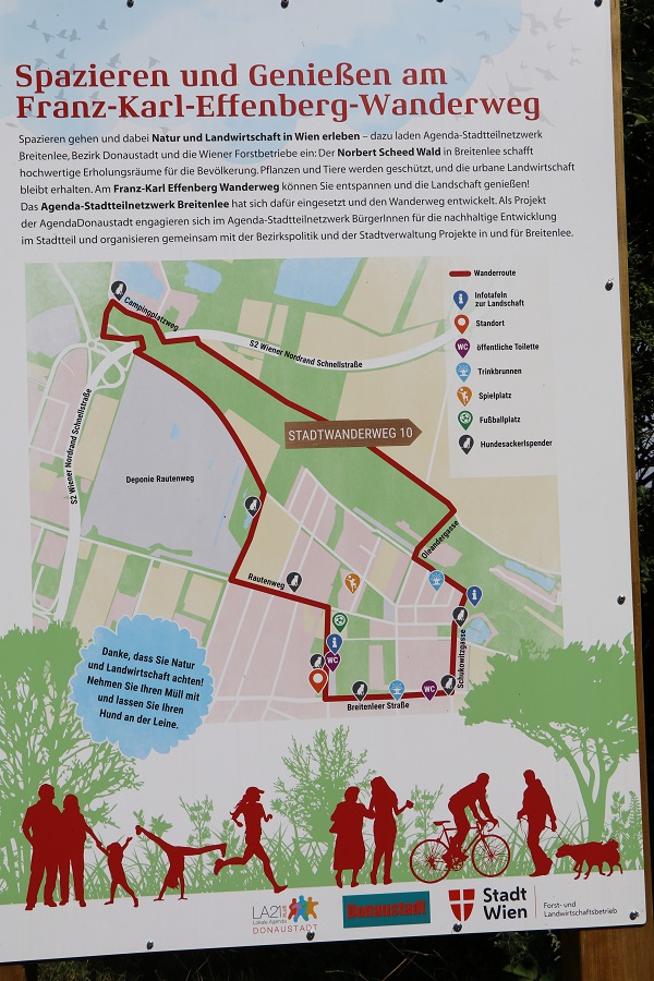 Die Karte zum Stadtwanderweg 10 haben wir hier fotografiert. Friedhof Breitenlee – GC7MCG5 von felher. Nun fahren wir weiter auf der Breitenleer Strasse zu Abfalltrennung – GC7QMTH.