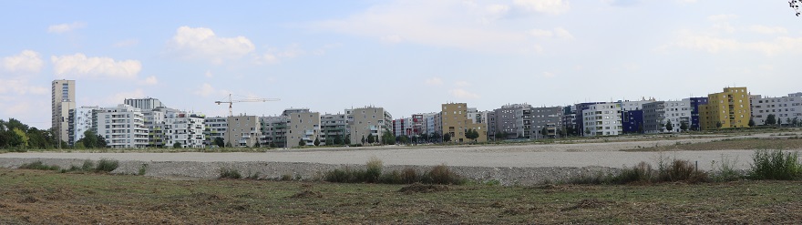 Vom Cache – Bernhardinerallee CB – GC6443W von Midaja CB hatten wir diesen Ausblick. Im Listing heisst es – Eine der wohl kürzesten Straßen in der Donaustadt reicht von der Johann-Kutschera-Gasse im Westen bis zum Zwischennutzungscluster West der Seestadt Aspern. Darüberhinaus ist der Name auch nur ein inoffizieller, denn eine Bernhardinerallee ist im Straßenverzeichnis der Stadt Wien gar nicht angeführt. Die Legende besagt, dass der kleine zum ehemaligen ARBÖ-Trainingszentrum Wien führende Verkehrsweg nach dem Bernhardiner, dem Wappentier des ARBÖ benannt ist. Seltsam? Aber so steht es geschrieben …