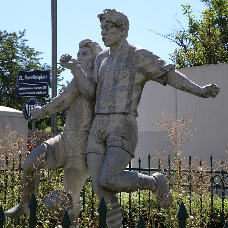 Vorwärtsplatz, benannt nach dem in diesem Bezirksteil beheimateten Fußballklub „Vorwärts XXI“.