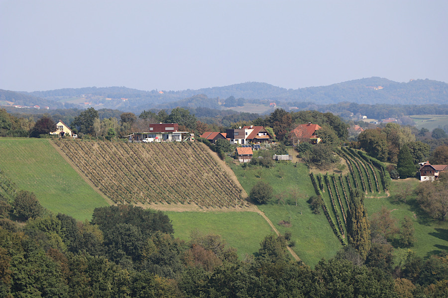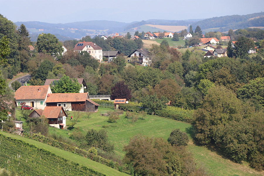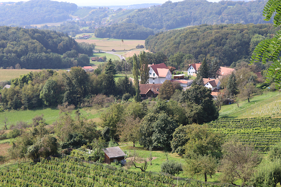 Bevor wir in die Ortsmitte aufbrechen heben wir noch Columbo – GC40BTW von smarana. Ein netter Ort auf einem Hügel mit tollen Aussichtspunkten. In der Ortsmitte gibt es eine Aussichtsplattform mit grandiosen Blick in das Steirische Hügelland. In der Greisslerei bekommen wir Kaffee und eine Portion „Weinstrauben“, eine typische Mehlspeise hier.