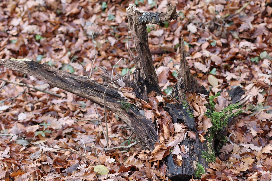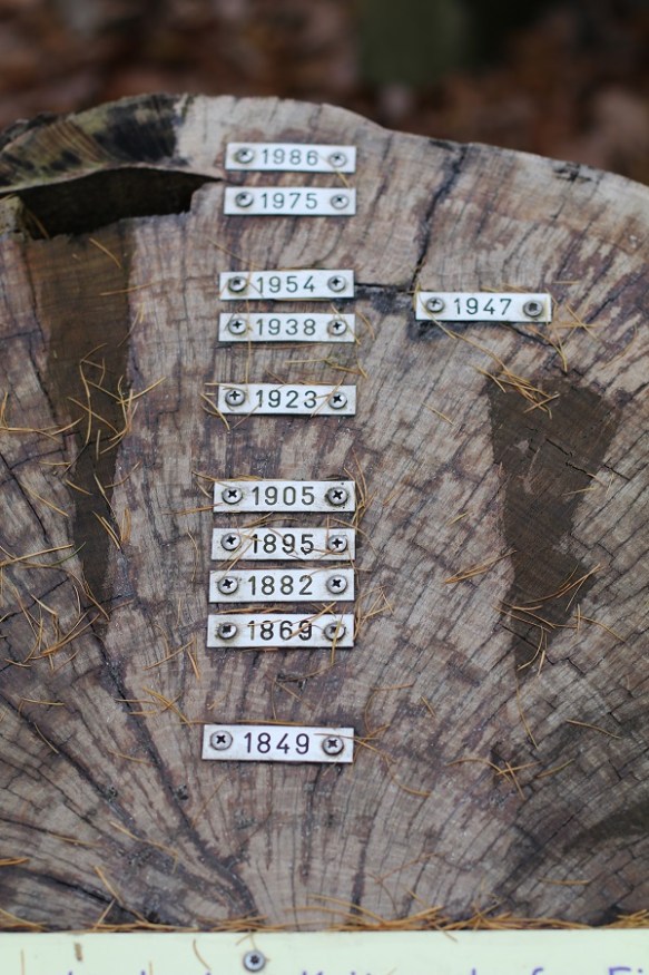 Während unserer Wanderung entdeckten wir diesen Querschnitt eines Eichenstammes mit den datierten Jahresringen.