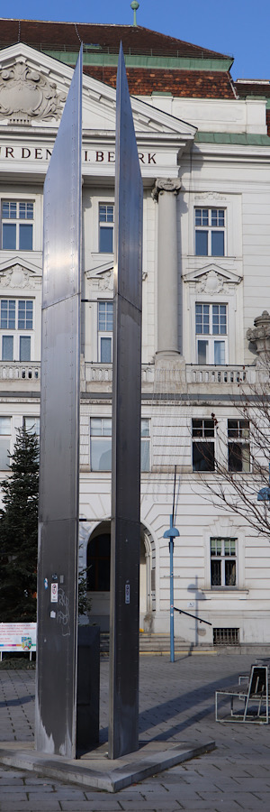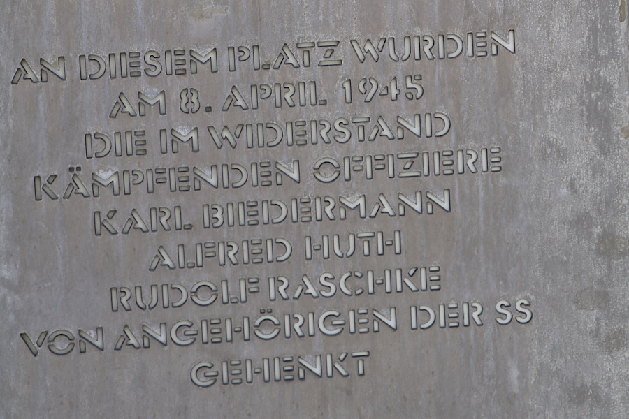Bei diesem Denkmal am Spitz werden vier Widerstandskämpfer geehrt, die in den letzten Kriegstagen hier von den SS-Schergen gehenkt wurden.