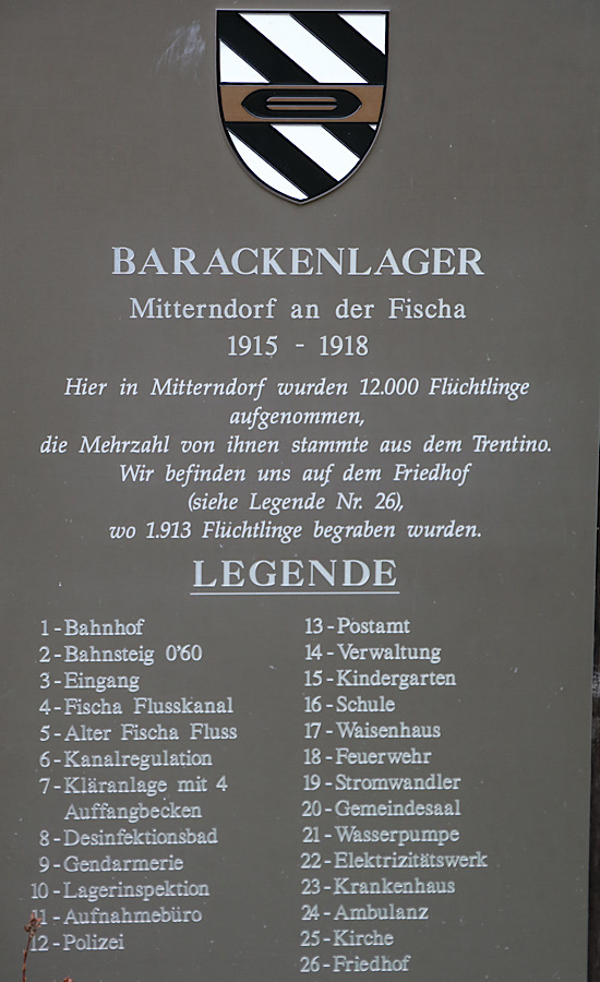 Es wurde im Jahre 1915 errichtet. Es diente fast ausschließlich den Flüchtlingen, Deportierten und Evakuierten aus dem italienischen Trentino sowie aus Istrien als Notquartier. Das Lager bestand (im Endausbau) aus ca. 400 Wohn- und Verwaltungsgebäuden, die sich auf über 700.000 Quadratmetern verteilten. (Der oben abgebildete Lagerplan stellt die ursprüngliche Planung dar. Tatsächlich wurde es dann aber mehr als doppelt so groß!) In jeder Wohnbaracke waren – je nach Größe – zwischen 40 und 100 Personen untergebracht. Nach Berichten von Zeitzeugen waren – vor allem zu Beginn – aber manchmal auch mehr als 250 Menschen in eine Baracke gepfercht. Insgesamt lebten hier ca. 12.000 Menschen.
