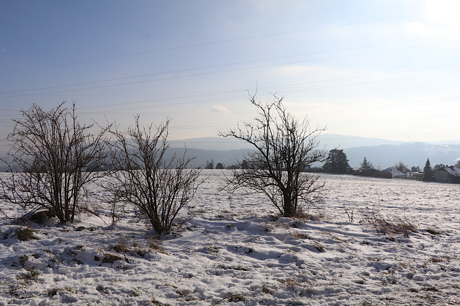 Mittags parkten wir unser Cachemobil in der Holzgasse. Vor zwei Tagen hatten wir die ersten Geocaches der G-Runde gefunden. Wir nutzten den tollen Sonnenschein für eine neuerliche Runde. Die Temperaturen bewegten sich um die Null-Grad-Grenze, deshalb waren die Wiesen immer noch schneebedeckt.