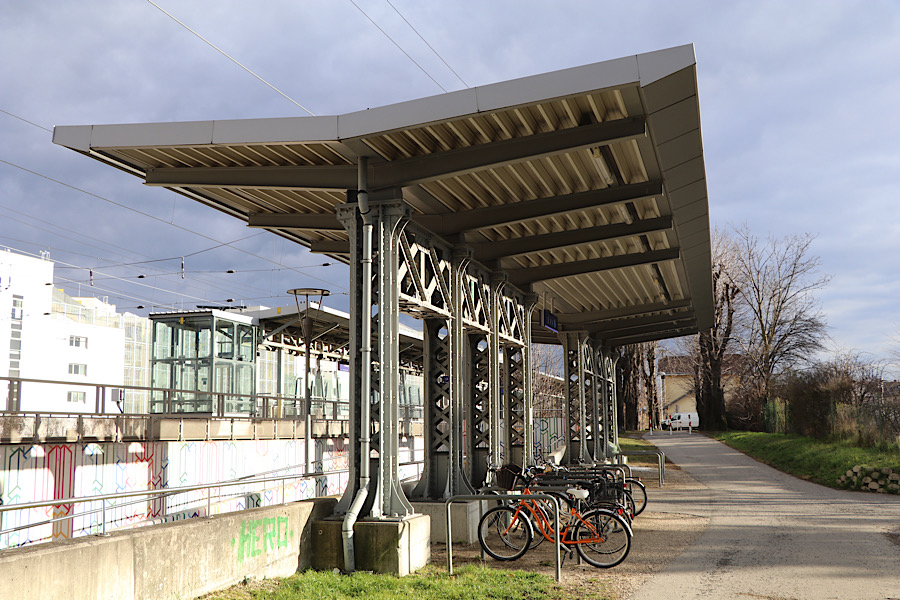 In GC8ZQP5 – „In Memoriam Bahnhof Jedlesee“ von Die Quakies müssen wir den ursprünglichen Standort des ehemaligen Bahnhofs Jedlesee der Nordwestbahn finden. Die Nordwestbahn verkehrte – beginnend vom Nordwestbahnhof – bis 1959 an der Stelle der heutigen Nordbrücke. Bevor es nach Znaim weiterging, wurde hier – am Bahnhof „Floridsdorf-Jedlesee“ Halt gemacht. Außerdem befanden sich unweit von hier die Werkstätten der Eisenbahn. Die Lokomotivfabrik befand sich auf der anderen Seite der heutigen Autobahn, dort sich wo heutzutage das SCN befindet.