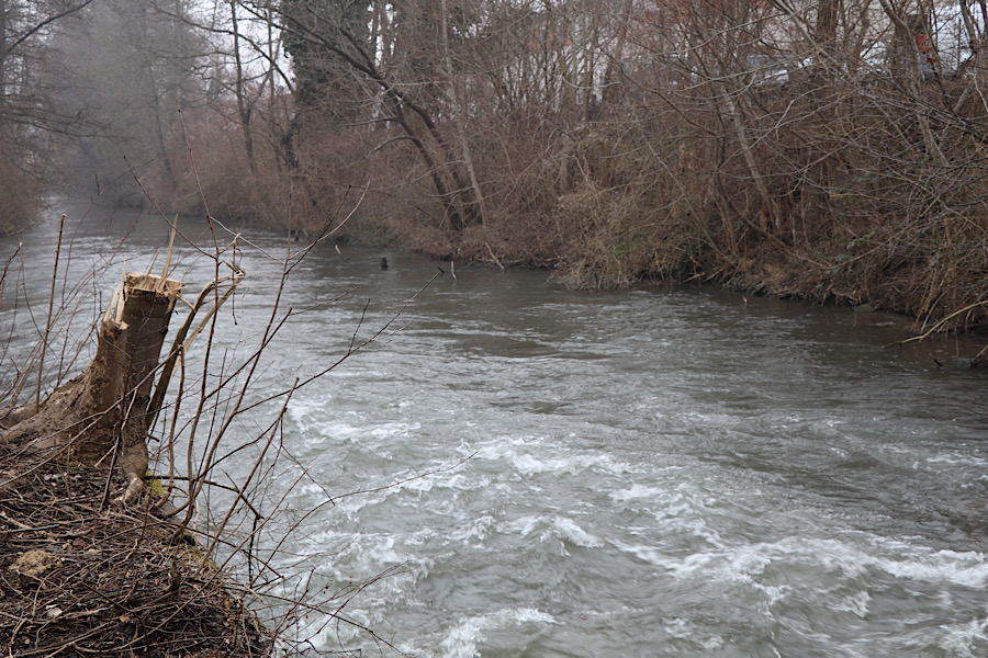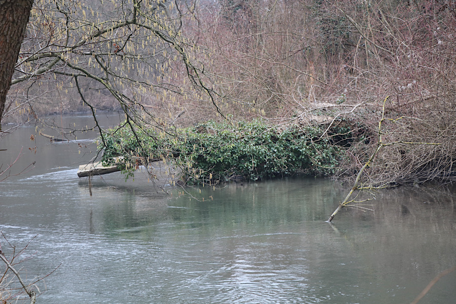 Wir wanderten weiter zur nächsten Dose am Fischaspitz. Rund um uns eine Aulandschaft, die knapp vor dem Frühlingserwachen steht.
