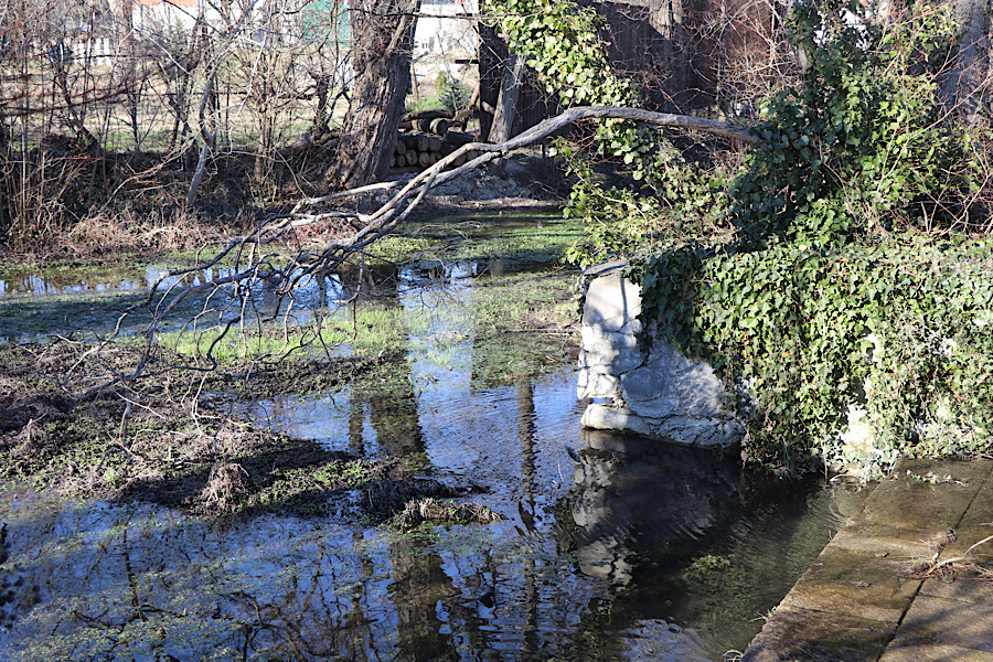 Die sogenannte „Rossschwemme“ ist eine flache Wasserstelle, abgezweigt vom Bach, damit hier Tiere (früher v.a. Ochsen und Pferde, heute hauptsächlich Hunde) trinken und sich abkühlen können. Auf dem angrenzenden Pflanzsteig kann man noch ein Stück sehr schön spazieren. Hier machten wir uns auf die Suche nach der Flaschenpost – GC68NTT – von Bauersfrau.