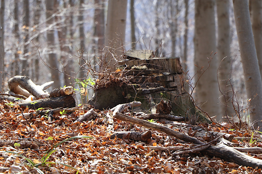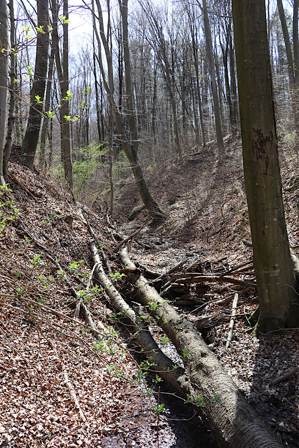Leise schleichen wir auf direktem Weg zu Kirchenrunde 4,5. Das manchmal aufkommende Schnaufen der wandelnden älteren Personen ist den hier vorkommenden Hirschkühen genug Warnung sich nicht blicken zu lassen – Kirchenrunde 4,5 – GC94CKN.