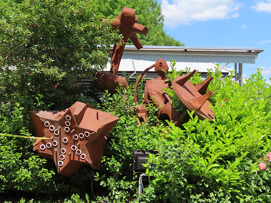 Mad Cow – oder Carnotaurus – ist ein tonnenschwerer Stahl-Bulle, der durch Feuer zum Leben erwacht. Eine Skulptur, geschweißt in über 1500 Stunden Arbeit in den letzten 3 Jahren von Christian “Cricri” Marmorstein aus Weidling. Stark und intelligent: der Bulle funktioniert als Feuerkorb, in mehreren Schichten Stahlblech gearbeitet, durch Luftströme und Wasser gekühlt, um während des Abbrands stabil zu bleiben. Harry ist im Schweif verewigt. Den Bonus dazu – GC93N6W heben wir natürlich auch.