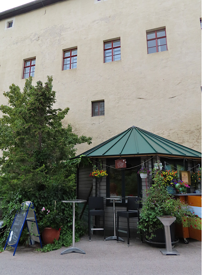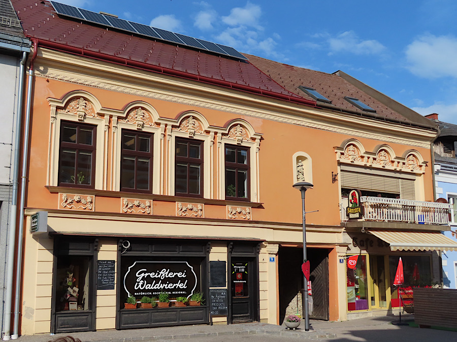 Den 2 km langen Rundgang durch Ottenschlag von SaschaGeerts als Adventure Lab wagen wir doch brütender Hitze. Wir starten beim Womo-Standplatz. Allerdings bereits beim Schloss machen wir einen Abstecher zum Heurigen im Schloss und kühlen uns mit Schloss-Spritzer. Hier bekommen wir einen kleinen Vorgeschmack auf die nächsten Stunden. Zweimal begann es zu Tröpfeln, aber unsere Jausˋn konnten wir weiter im Freien genießen.