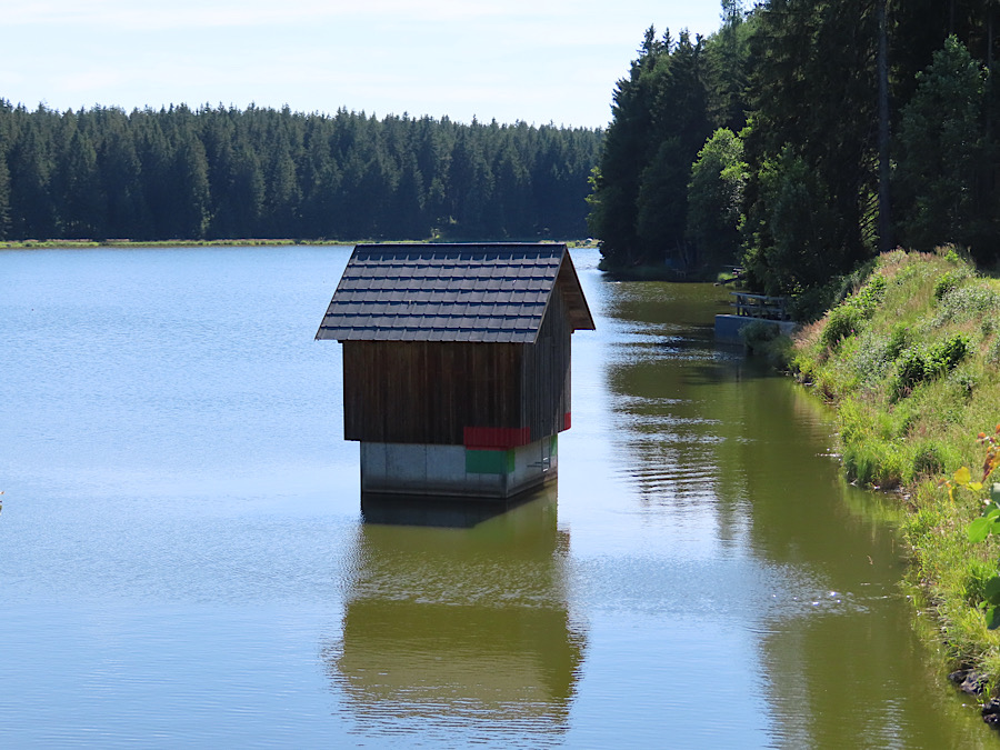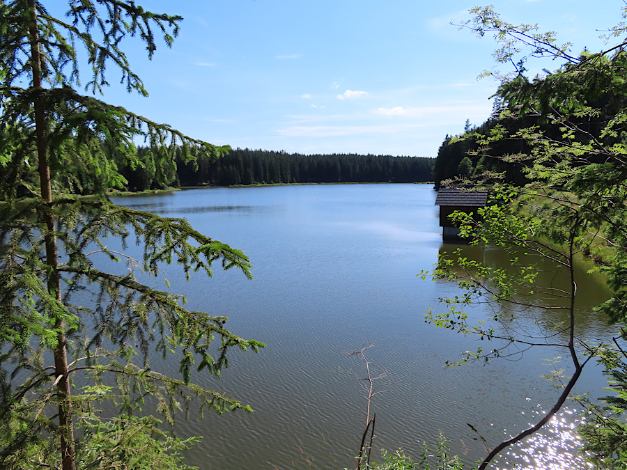 Chrisim führte uns zum Weyrerteich – GC2GEG6 ein 500 Jahre alter Fischteich, und bietet auf einer Wasserfläche von ca. 12ha ein wahres Angelerlebnis. Mit einer Durchschnittstiefe von ca. 2,5-3m lädt der inmitten eines ausgedehnten Waldstückes gelegene Teich nicht nur zum Fischen, sondern auch zu kleinen Wanderungen und Spaziergängen in der Umgebung ein.