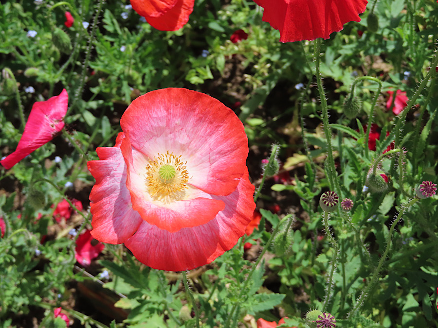 Nach dem Frühstück starten wir mit unseren E-Bikes vom Womo-Standplatz in Ottenschlag auf der L7180 nach Endlas. Für die Berg- und Talfahrt im Waldviertel sind die E-Bikes für uns als über 60jährige super. Im Ort fahren wir Richtung Armschlag und nach Reith sehen wir die ersten Mohnfelder.