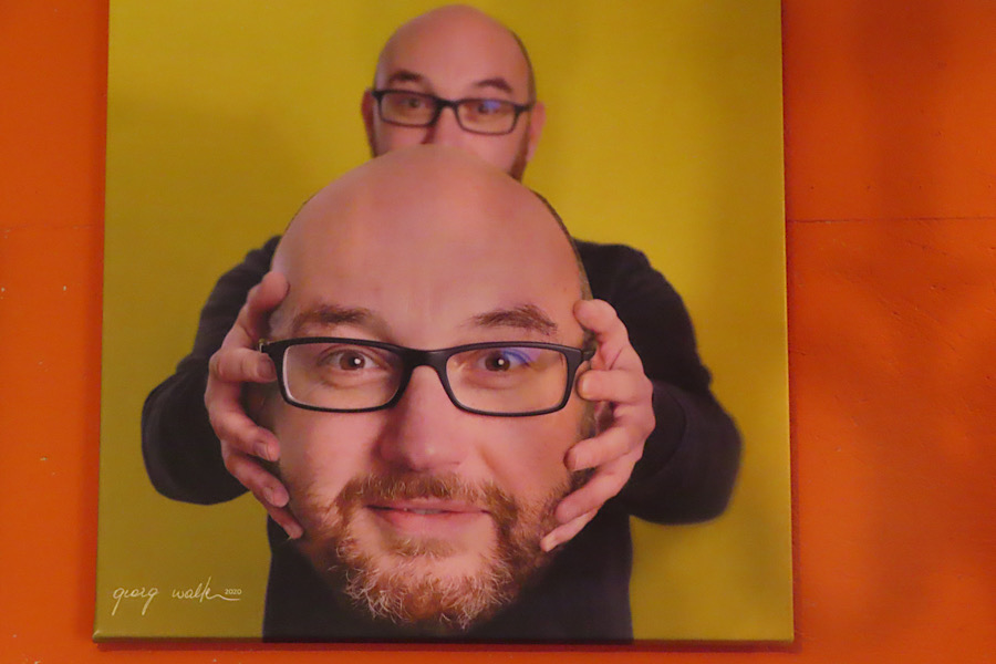 Wir stellen hier unsere Fahrräder ab und stauen über die „Größe“ des Museums. Neugierig öffnen wir vorsichtig die Tür und sind überrascht von den krativen Bildern an den Wänden. Allerdings fällt es uns schwer sie zuzuordnen oder zu interpretieren. Dann fällt unser Blick auf den diesjährigen Ausstellungskatalog