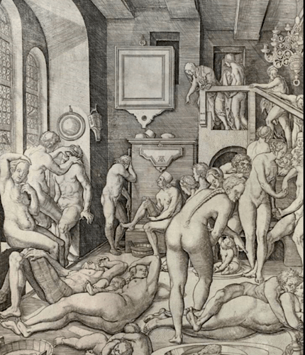 Es herrschten durchaus lockere Sitten, wie auf dem Kupferstich „Badestubenleben“ von Heinrich Aldegrever aus dem 16. Jh. zu sehen ist.