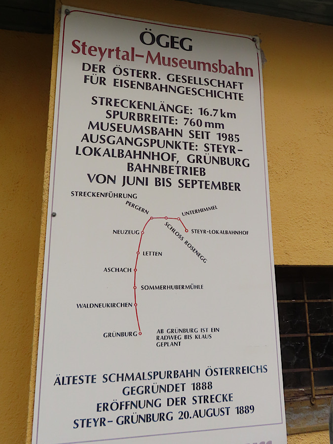 Der Österreichischen Gesellschaft für Eisenbahngeschichte (ÖGEG) gelang es die Bahnstrecke von Steyr nach Grünburg zu erwerben. Seit 1985 wird dieser Abschnitt wieder als Museumsbahn mit Dampfzügen betrieben. Es handelt sich um die älteste Schmalspurbahn Österreichs, welche 1888 gegründet wurde.