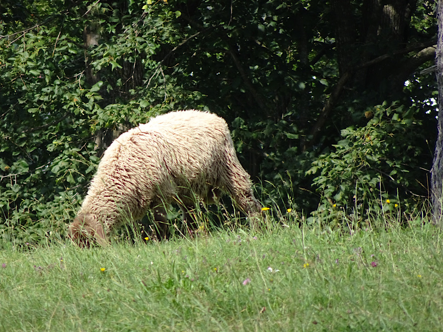 Neben der Kirche und einem Gasthaus, das in der Hauptsaison zwei Wochen geschlossen ist, gabs noch tierische Überraschungen. Wir versuchten auch beim Geocaching einen Multi zu finden. Zwei Stationen hatten wir erfolgreich gelöst. Aber über den Zugang zum „Final“ waren wir uns nicht einig. Das Loggen muss auf den nächsten Besuch verlegt werden.