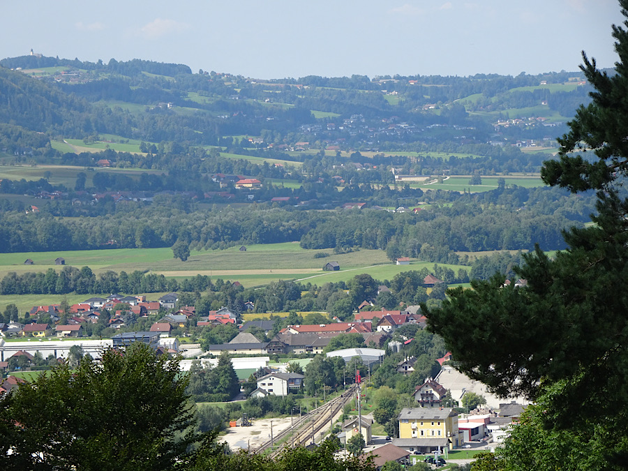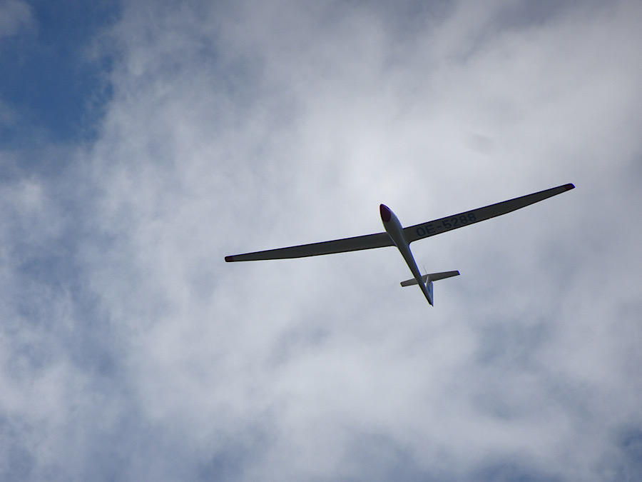 Vom Hügel hatten wir einen tollen Ausblick in das Kremstal auf die Orte Micheldorf und Kirchdorf. Wir erlebten auch den Start eines Segelfliegers mit einer Seilwinde vom Flughafen Micheldorf. Dadurch wird das Segelflugzeug in ca. 3-4 Sekunden von 0 auf knapp 100 km/h beschleunigt, hebt ab und erreicht nach etwa 30 Sekunden eine Höhe von etwa 300-400 Metern. Das Seil fällt im Anschluss mit einem Fallschirm zu Boden.