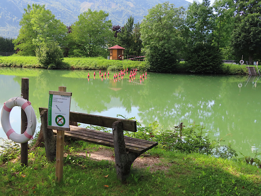 Zwei zentrale Vergnügungszentren passierten wir bei unserem Kurztrip. Einen Schwimmteich, der seit heuer wieder zum Baden genutzt werden kann und einen Spielplatz für die Kids des Ortes.