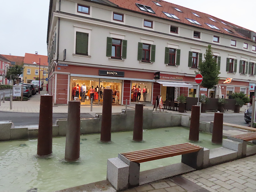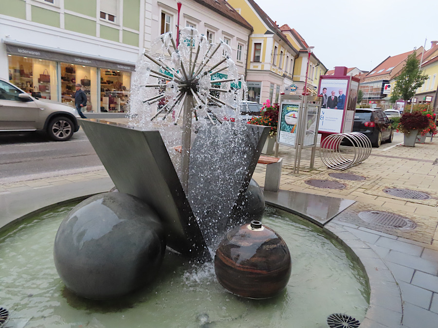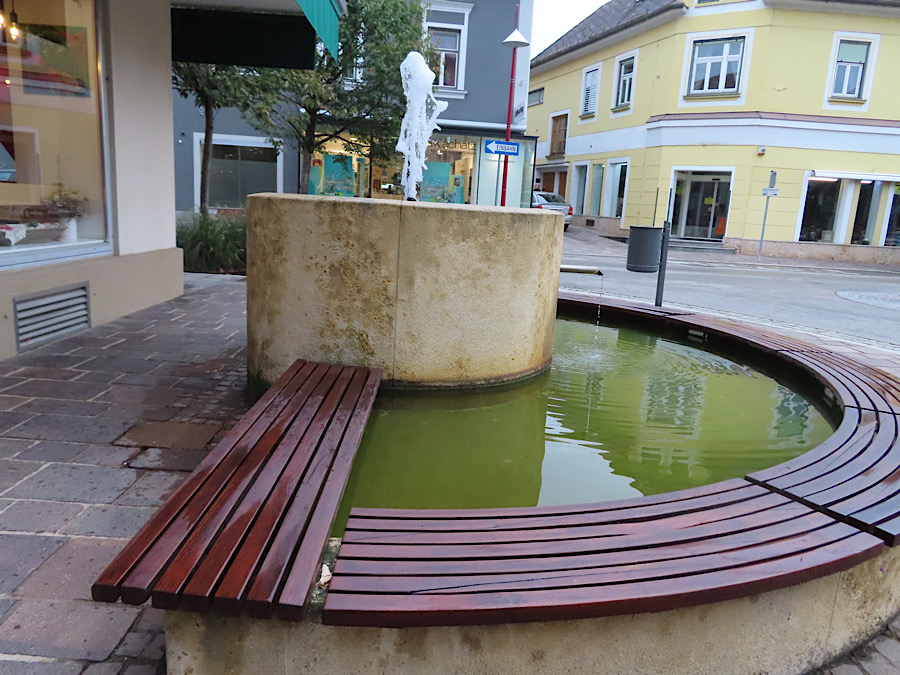 Am späteren Nachmittag, der Regen hat sich vertschüsst, spazieren wir das Zentrum von Fürstenfeld, um zwei Adventure Lab. Der erste ist eine Brunnentour von sirkönig.