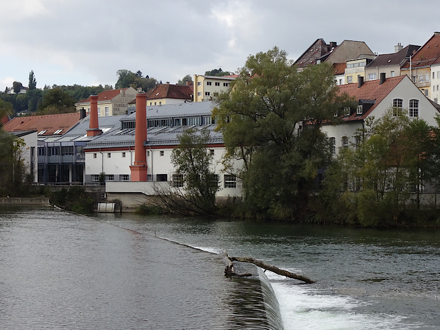 Beim Heben der Dose blicken wir vom Schlossleitenweg auf die Heindlmühlwehr in der Steyr.