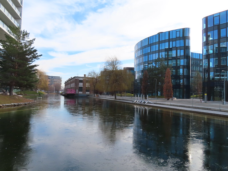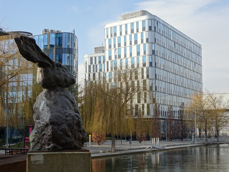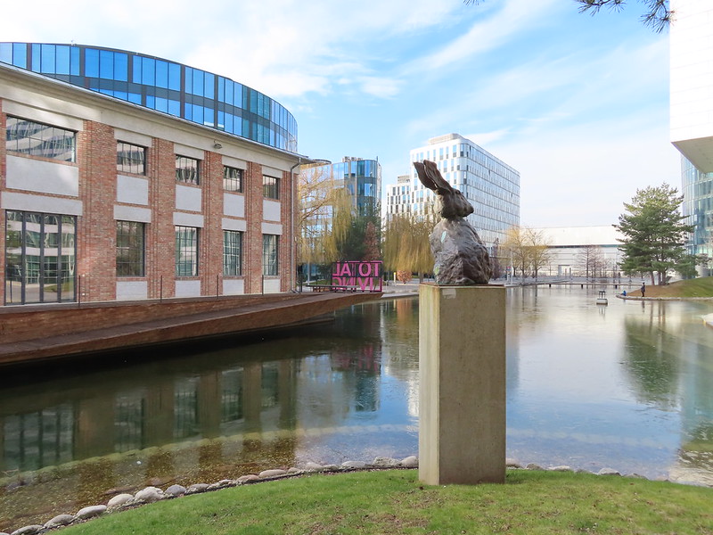 Heute brauchten wir nachmittags einen Spaziergang in der kühlen, sonnigen Winterluft Wiens. Wir peilten den Adventurelab „Skulpturenpark im Viertel Zwei“ von hopplhase. Viertel Zwei – für gewöhnlich eine österreichisch formulierte Zeitangabe – markiert seit einigen Jahren auch etwas ganz anderes: Viertel Zwei ist ein Ort, an dem sich Architektur, Natur und Kunst ein Stelldichein geben. Letzteres aufgrund der Vision und Initiative des Stadtentwicklers Michael Griesmayr und der Galeristin Gabriele Senn. Dieser Spaziergang führte uns rund um den 5000m² großen, künstlich angelegten See, umgeben von moderner Architektur und toll angelegten Grünflächen.